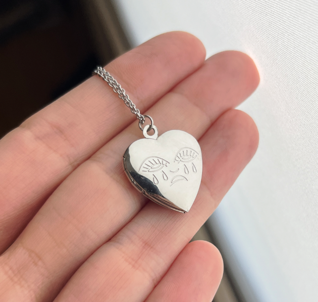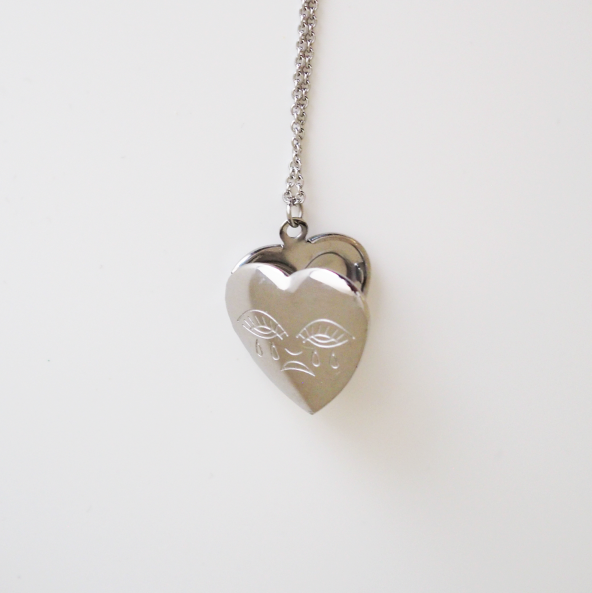 A real working lightweight locket that opens for a small photo, engraved with a Crying Heart design.