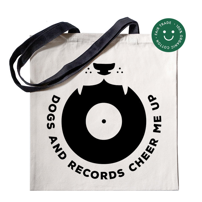 So whether you're heading to the record store, library, or grocery store, bring along this cute tote bag and show off your love for dogs and music.