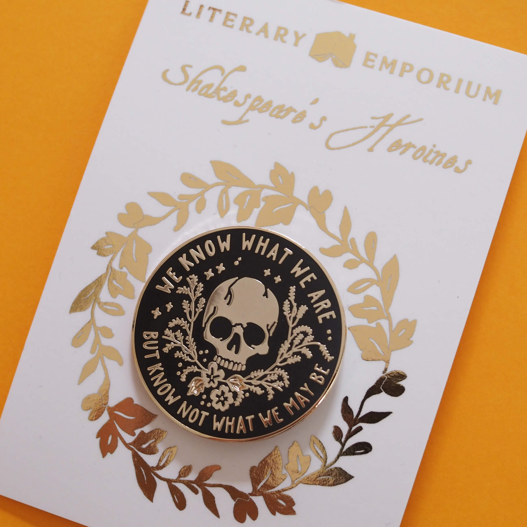 Part of Literary Emporium's "Shakespeare’s Heroines" collection, the pin is inscribed with the famous line: